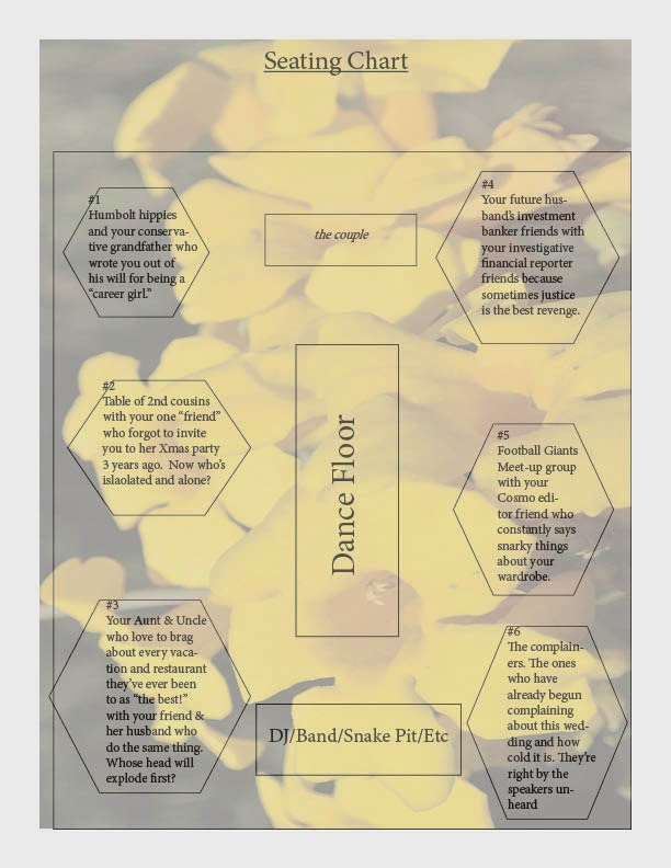 wedding where the groom arranged the tables to maximize as much contention as possible.